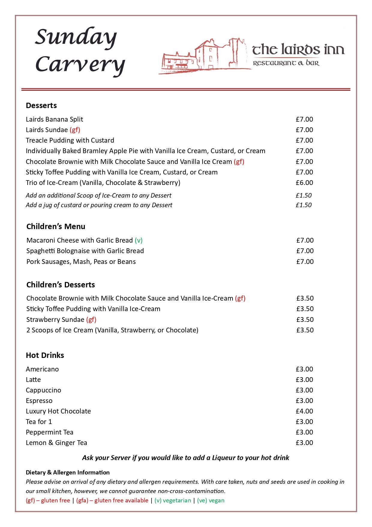 Here is our current food and drinks menu. Don't forget to check our Specials Board when you arrive, as we usually have some starter, main and dessert specials!